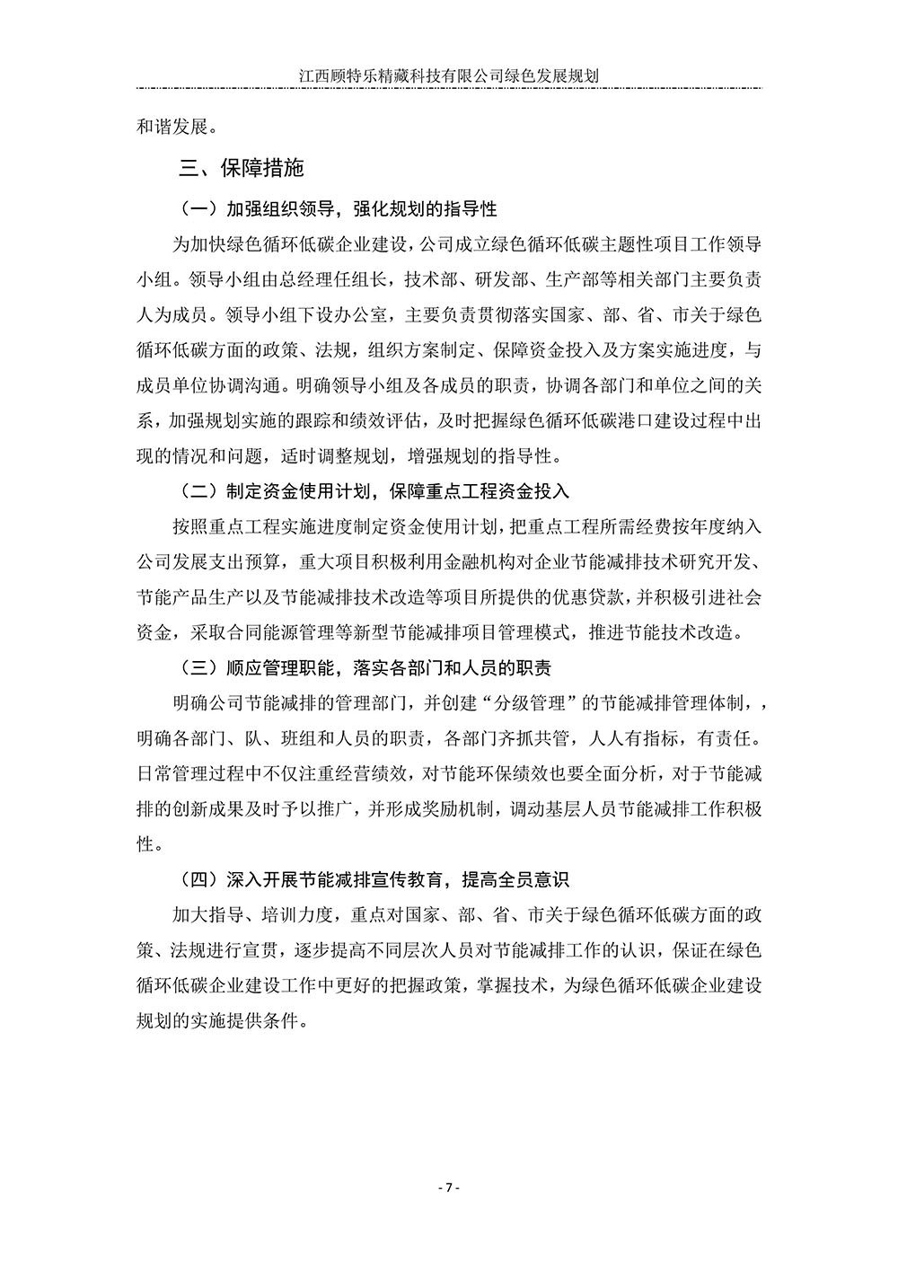 江西顧特樂精藏科技有限公司綠色發展規劃