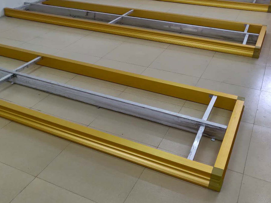 鋁合金型材:表面拋光、陽極氧化金砂處理,型材表面增強了抗劃力和抗氧化力、抗拉力不小于220N/㎜2.50年內不褪色不變形。