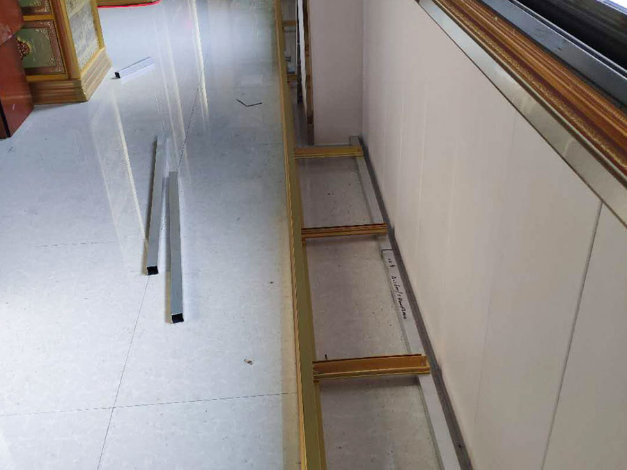 頂底鋁合金及門板的拼裝采用專用連接件連接,既美觀又避免人員的碰撞刮傷。