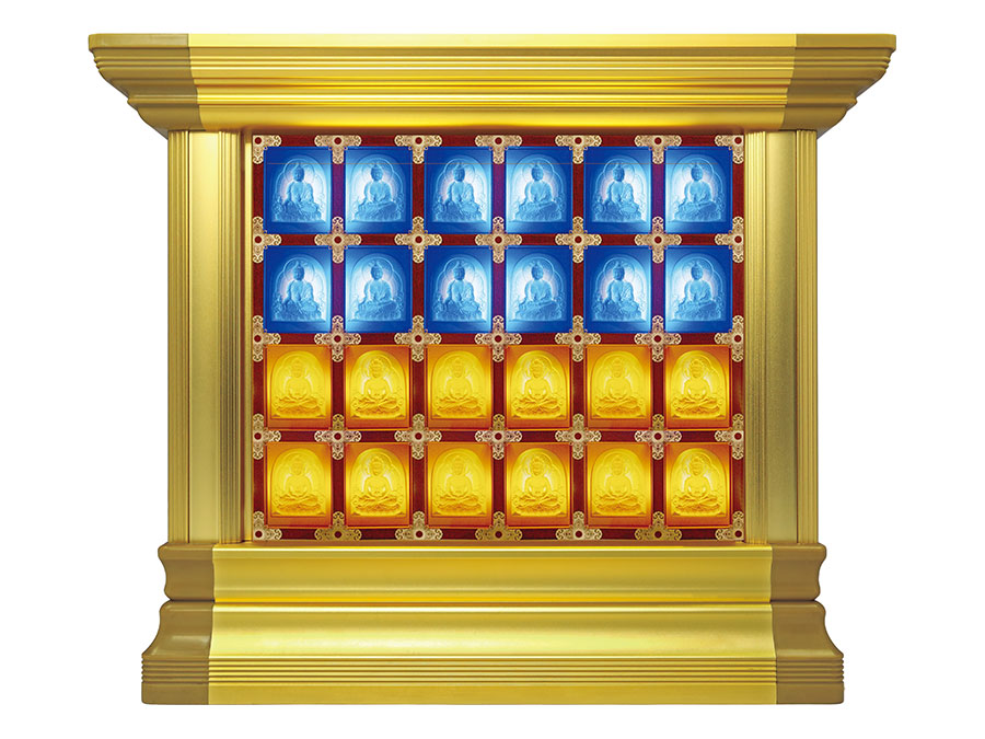 側板:用于裝飾和保護箱體側面的作用,又可根據現場,對佛龕架分類的標識作用,一目了 然方便管理。 頂蓋、底座:都是穩固整列和整排箱體水平線,底座還起到一部分承重作用。 轉角、封板:箱體轉彎處和空隙處塑形的作用。 地臺:多用于萬佛架及存放架底層,存放相關物品的作用。
