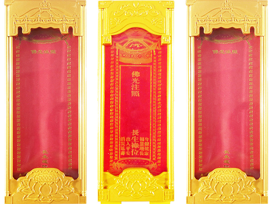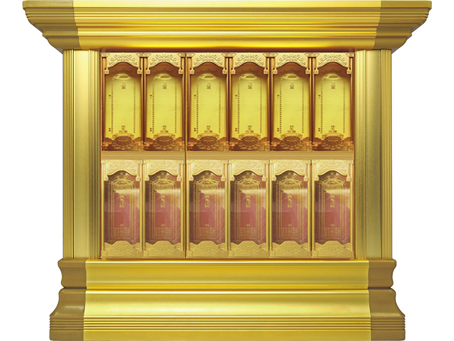 長往生牌位是由盒體、門板、側板、頂蓋、底座、轉角、地臺、封板等構成。
